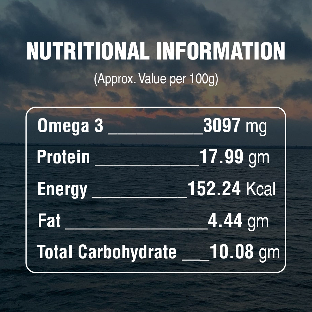 Approx. Values per 100g: Calories: 95 kcal Protein: 20g Fat:1.8g Omega-3 Fatty Acids: 0.12g